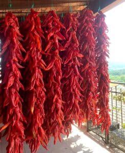 By the 1800s, the Senise Pepper had become an intangible part of local culture. Farmers hung the peppers to dry along balconies and courtyards, transforming villages into seas of red. This tradition continues today each August, when the harvest marks the end of summer. Peppers are sewn together with thread into long, vibrant strings called serte, which decorate homes and shops as they dry in the last warm weeks of the season.